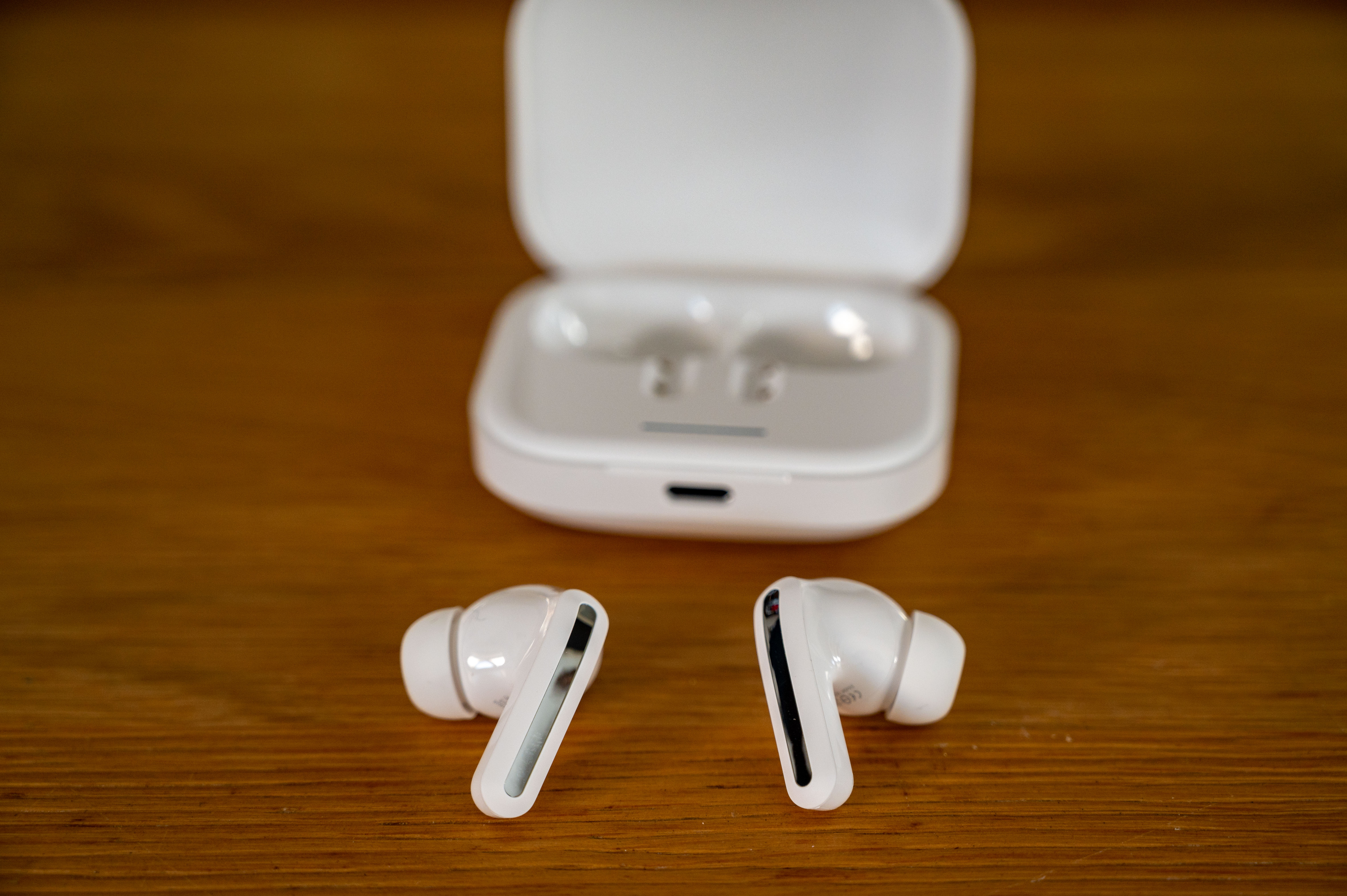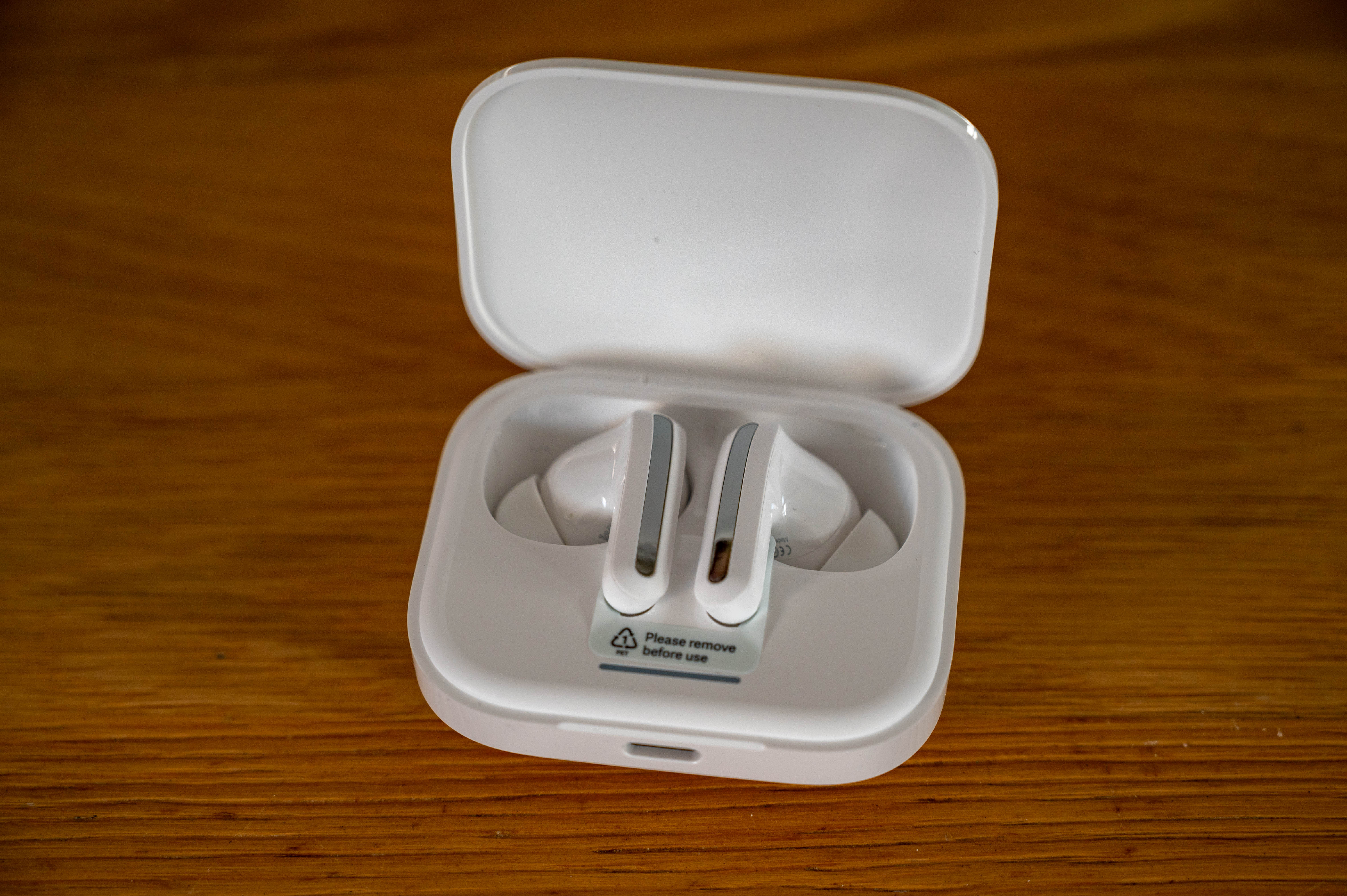 De oplaadcase is net zo goed ontworpen en heeft dezelfde matte afwerking als de oordopjes. Het compacte formaat maakt hem zakvriendelijk en het opklapbare deksel zorgt voor een vleugje gemak. Het magnetische mechanisme waarmee de oordopjes in het hoesje worden vastgezet, zorgt ervoor dat ze op hun plaats blijven tijdens het opladen en tijdens transport. De USB-C-oplaadpoort op de case is een welkom modern tintje en biedt sneller en universeel compatibel opladen.